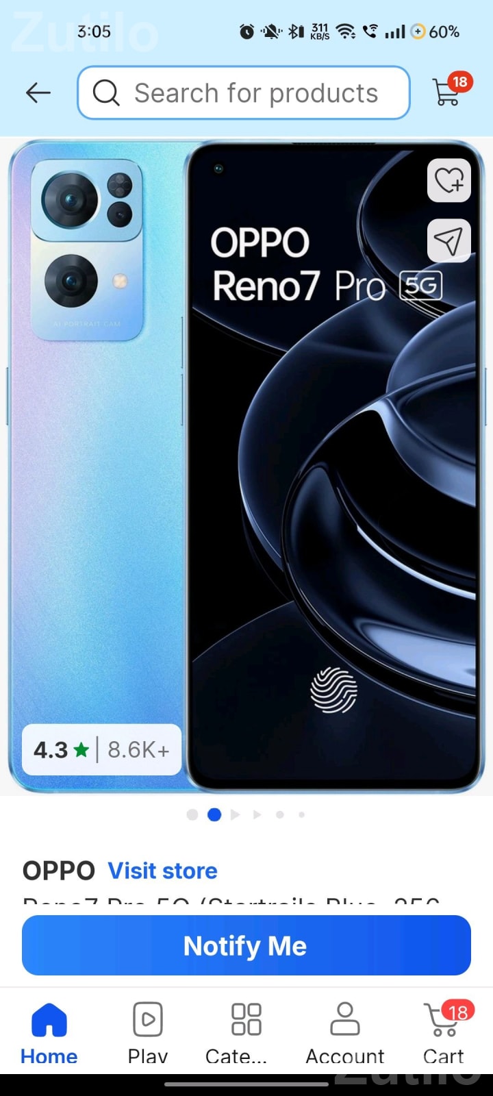 ટસ માં થોડું ક્રેશ ઓરિજનલ કોમ્બો ઓરિજનલ ફોન બિલ બોક્સ વાળું Oppo Reno 8T 5G smartphone available with bill, box, and 80W charger. Original phone with original combo. The display has a small crack and visible scratches as shown in the image. Suitable for buyers looking for an Oppo 5G mobile with box and accessories. Oppo Reno 8T 5G સ્માર્ટફોન બિલ, બોક્સ અને 80W ચાર્જર સાથે ઉપલબ્ધ છે. ઓરિજિનલ ફોન છે અને ઓરિજિનલ કોમ્બો સાથે છે. સ્ક્રીન પર થોડો ક્રેક છે અને ફોટામાં દેખાય તેમ સ્ક્રેચિસ પણ છે. બોક્સ અને એક્સેસરીઝ સાથે Oppo 5G મોબાઇલ શોધતા ખરીદદારો માટે યોગ્ય છે.